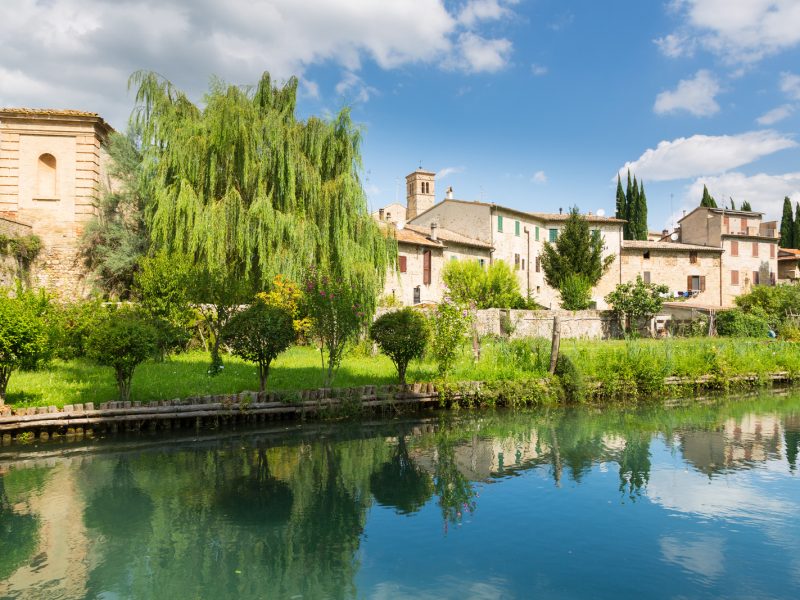 Located in the heart of Umbria, Torgiano is an ancient fortified medieval village set at the confluence of the Tiber and Chiascio rivers, amid rolling hills covered with vineyards and olive groves. It is an internationally renowned wine-producing center.